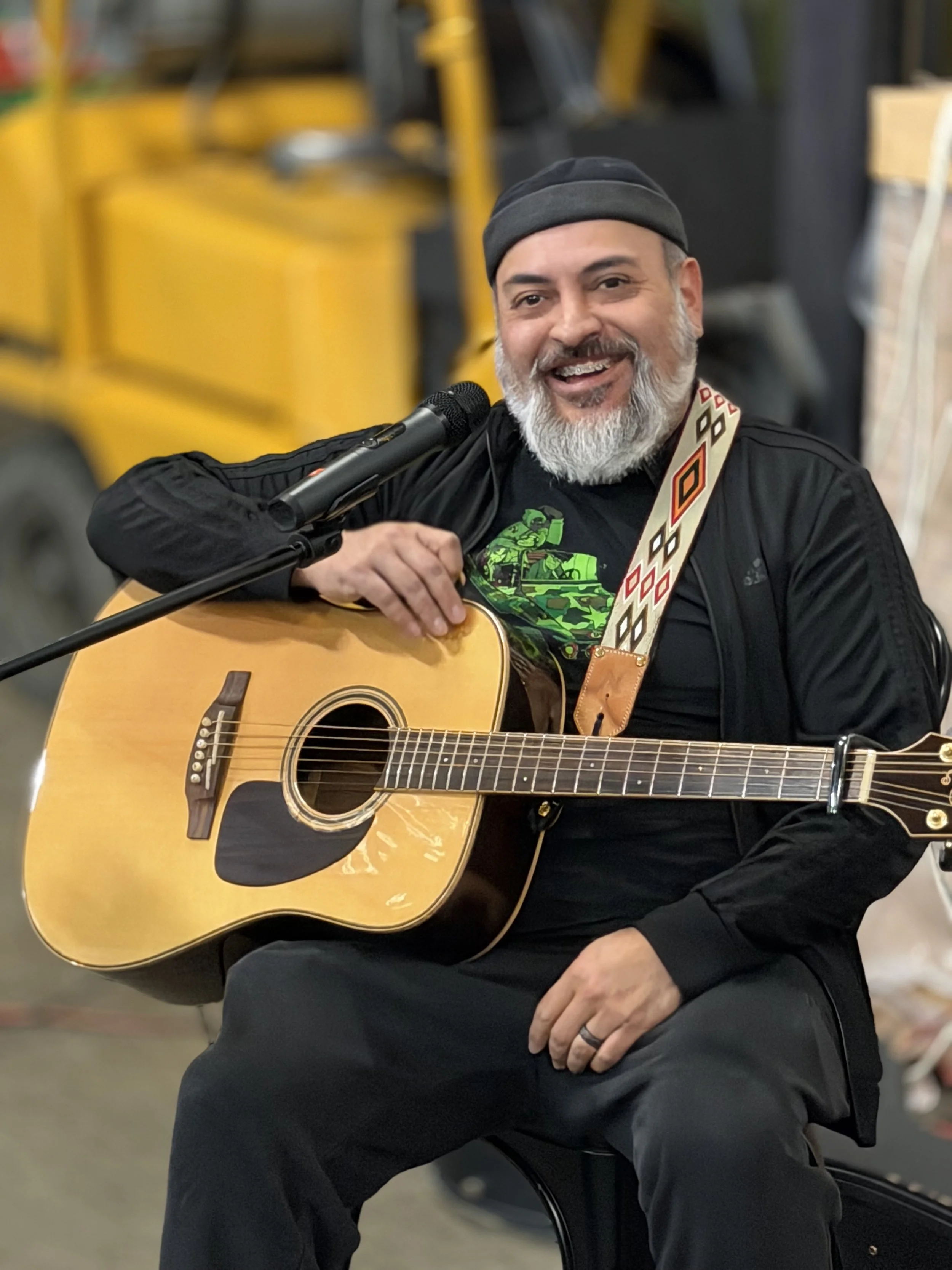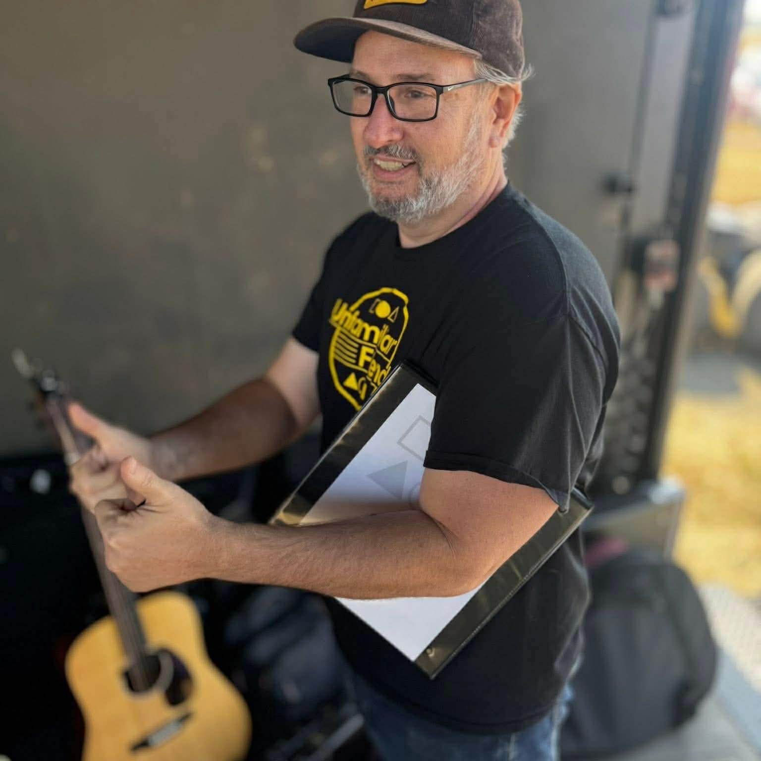 Mike Sabbatino is a friend who was born helpless, naked, and unable for to provide for himself, Mikey eventually overcame these challenges. At young age he learned to play the guitar and that set him on a life long journey of music and head banging. Over the past year Mikey has been hosting an Open Mic at Tallman Brewing in Lebanon, OR and playing acoustic guitar, and mouth harp with Unfamiliar Friends.